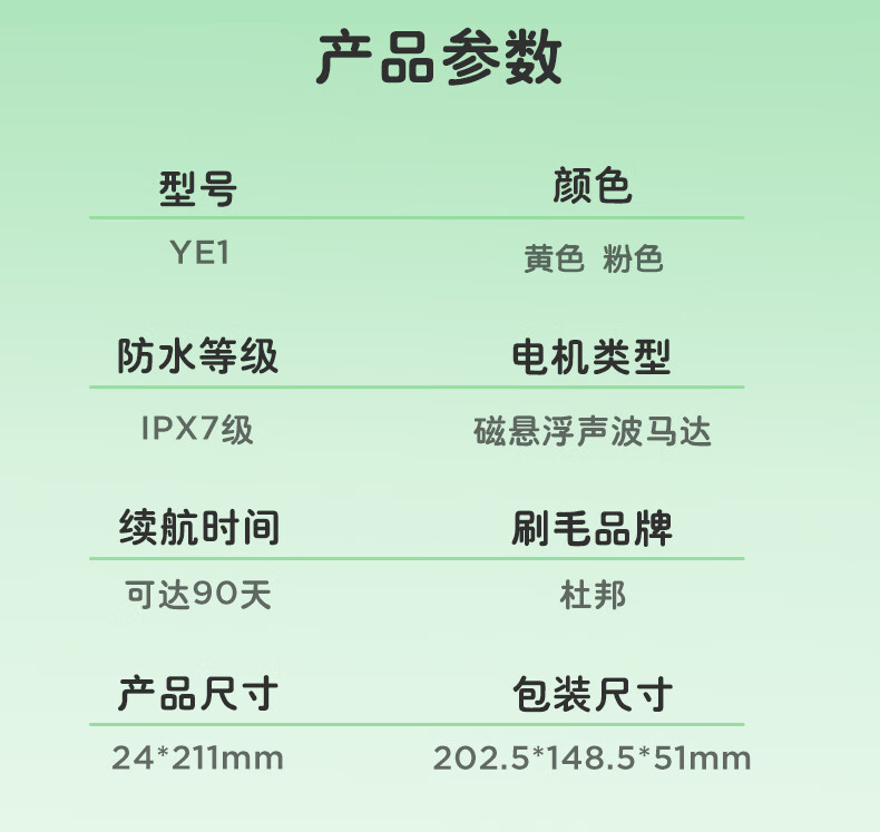 商品名称:美的 儿童牙刷YE1 萌萌黄:697354021111/ 乖乖粉:6973540201128下单备注颜色