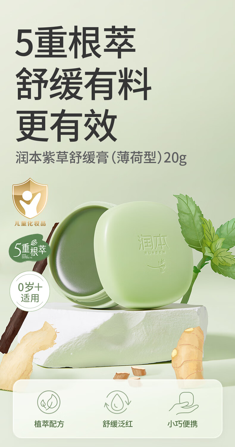 润本 婴儿紫草修护膏(薄荷型20g)6971435250343
