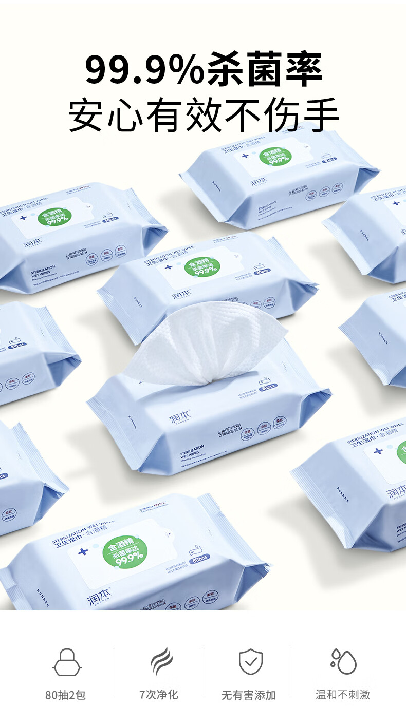 商品名称:润本 卫生湿巾80抽*2包(含酒精)6971435254891