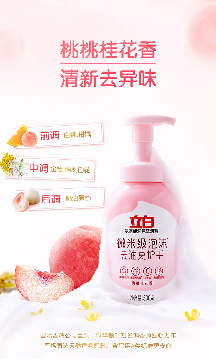 立白氨基酸泡沫洗洁精500g除味去油去腥99%除菌餐具净敏感肌适用 6920174772470