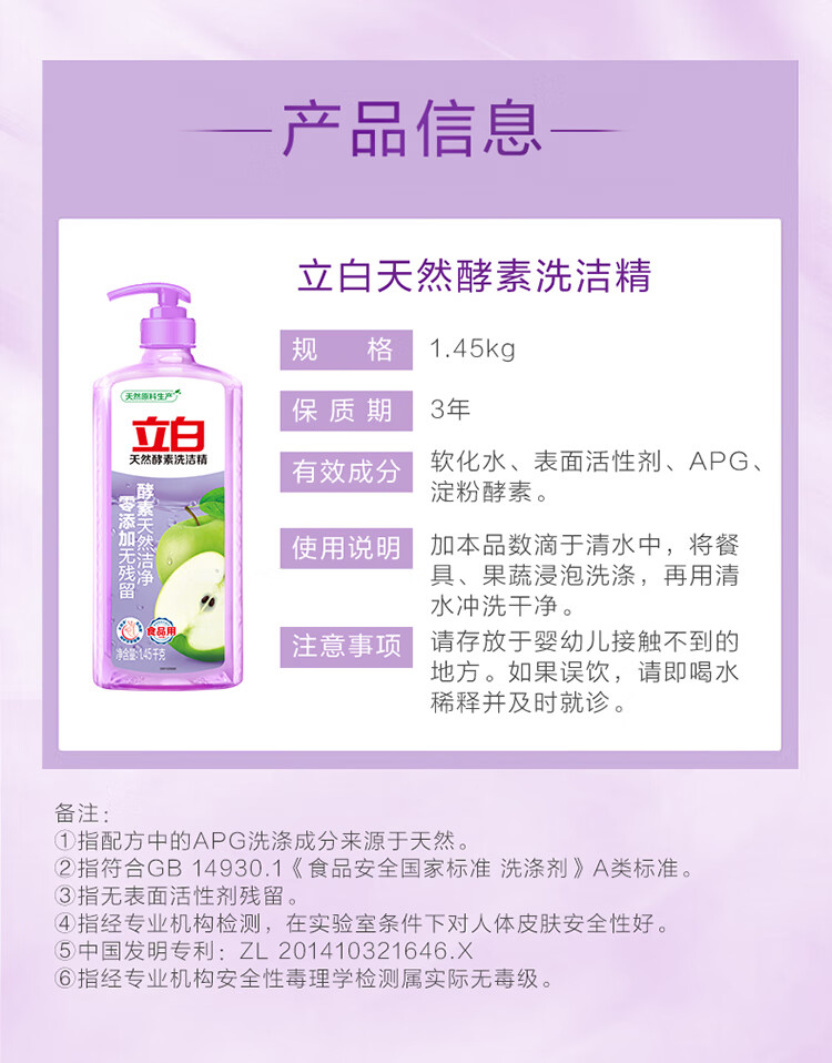 商品名称:立白天然酵素洗洁精1.45kg 6920174768862