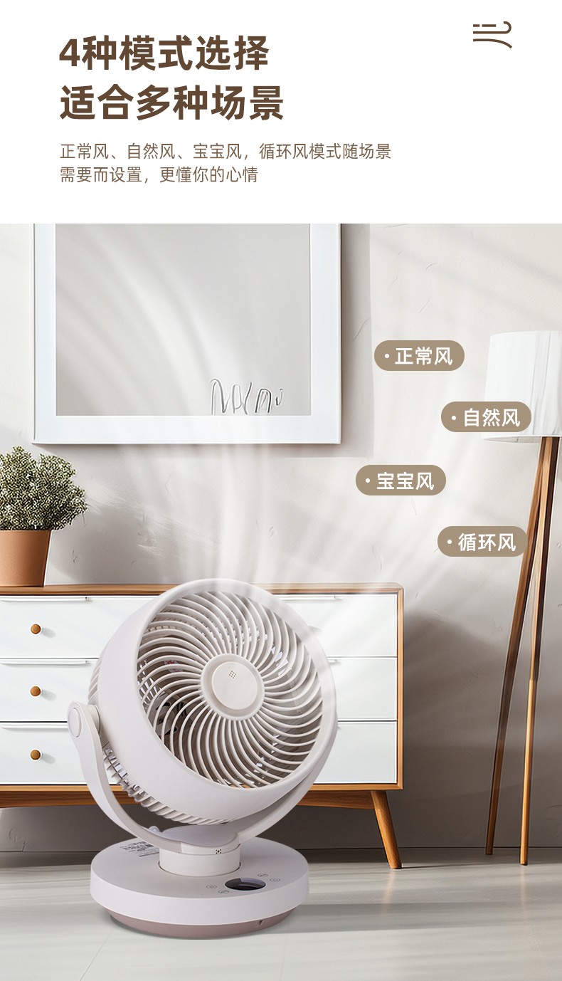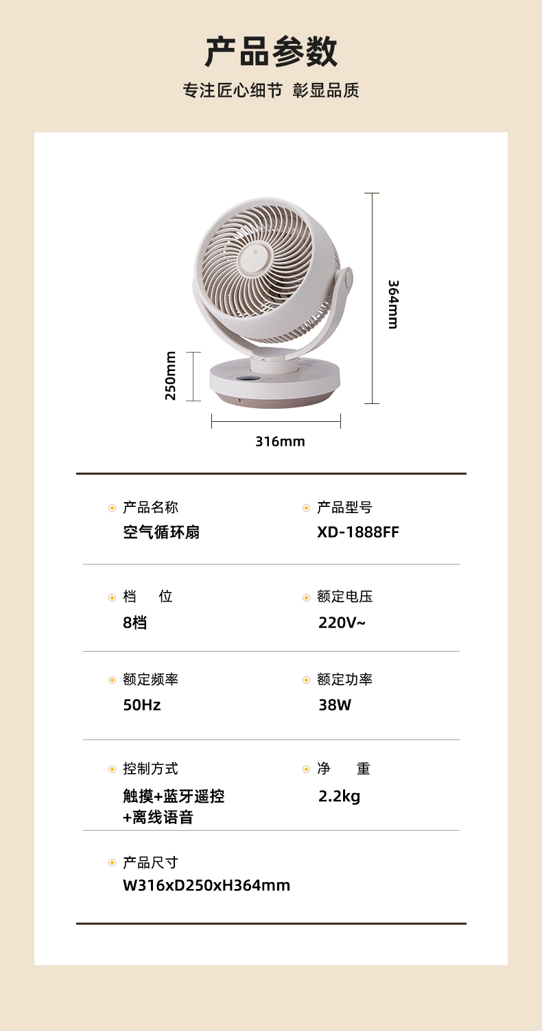商品名称:SEEDEN/西点7寸语音扫码遥控8档台式空气循环扇XD-1888FF 杏色
