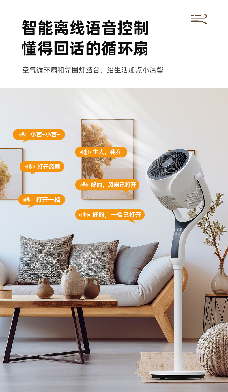 SEEDEN/西点9寸语音+蓝牙遥控12档带氛围灯直流变频空气循环扇XD-1838FA
