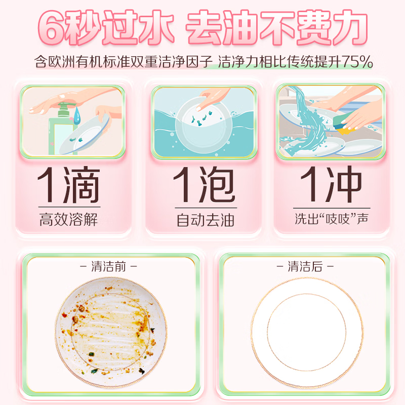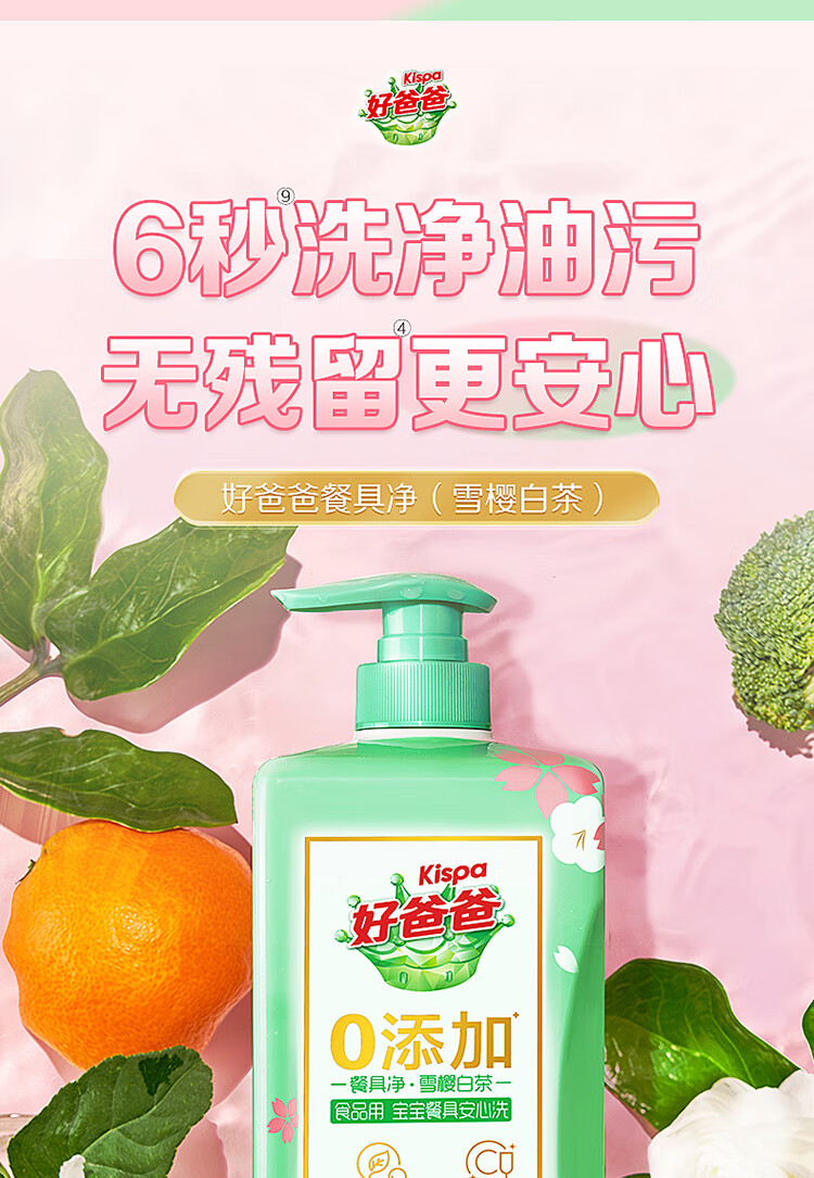 好爸爸果蔬餐具净雪樱白茶1kg洗洁精除味去油不伤手0添加 食品可用 6920174772265