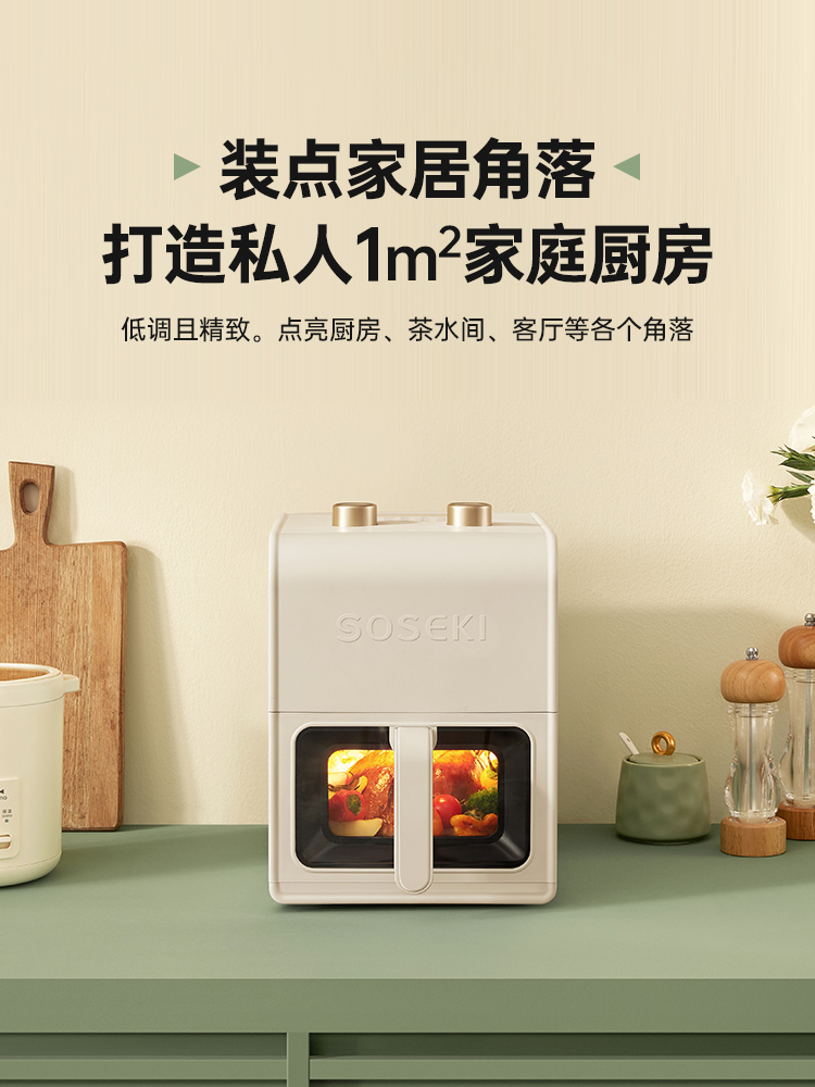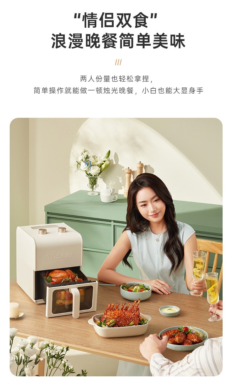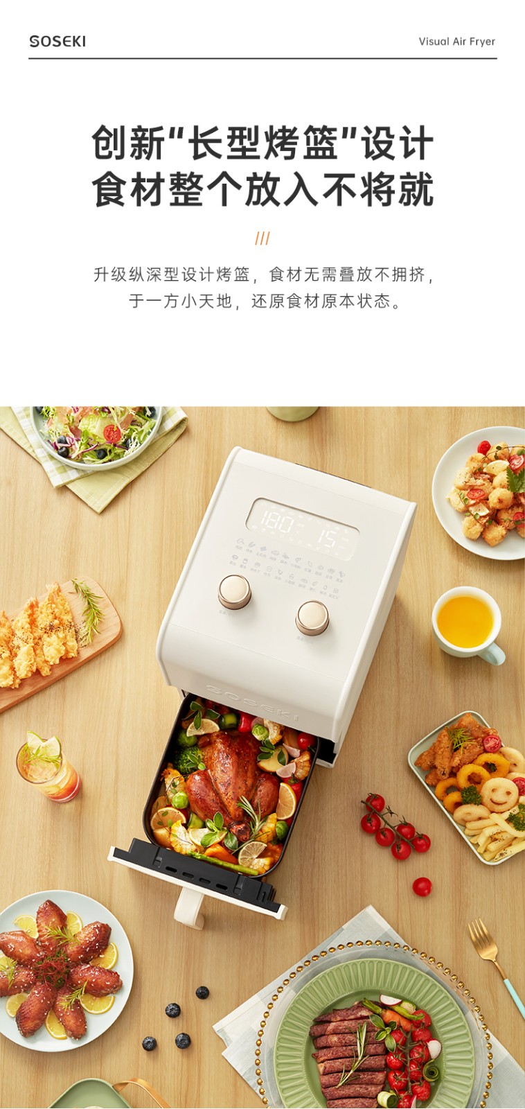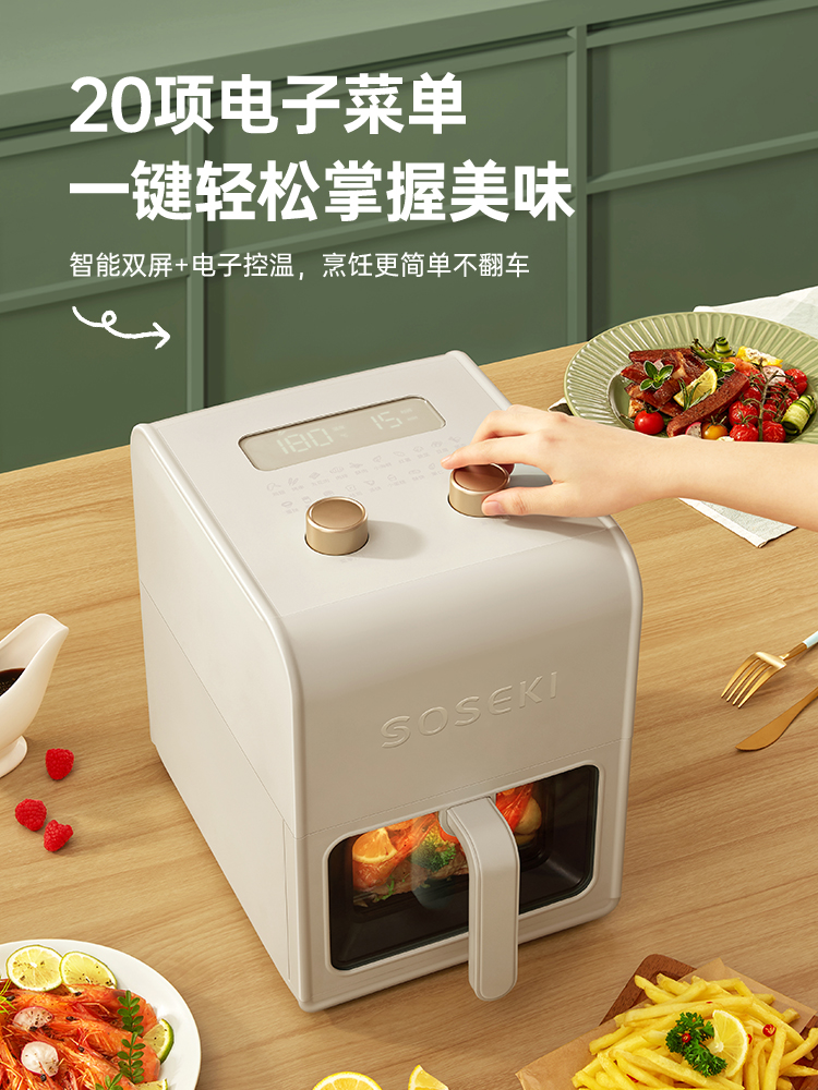 Soseki善思 5L可视空气炸锅 (电子式) SSK-KZ06-IV 象牙白/SSK-KZ06-GR薄荷绿 下单备注颜色