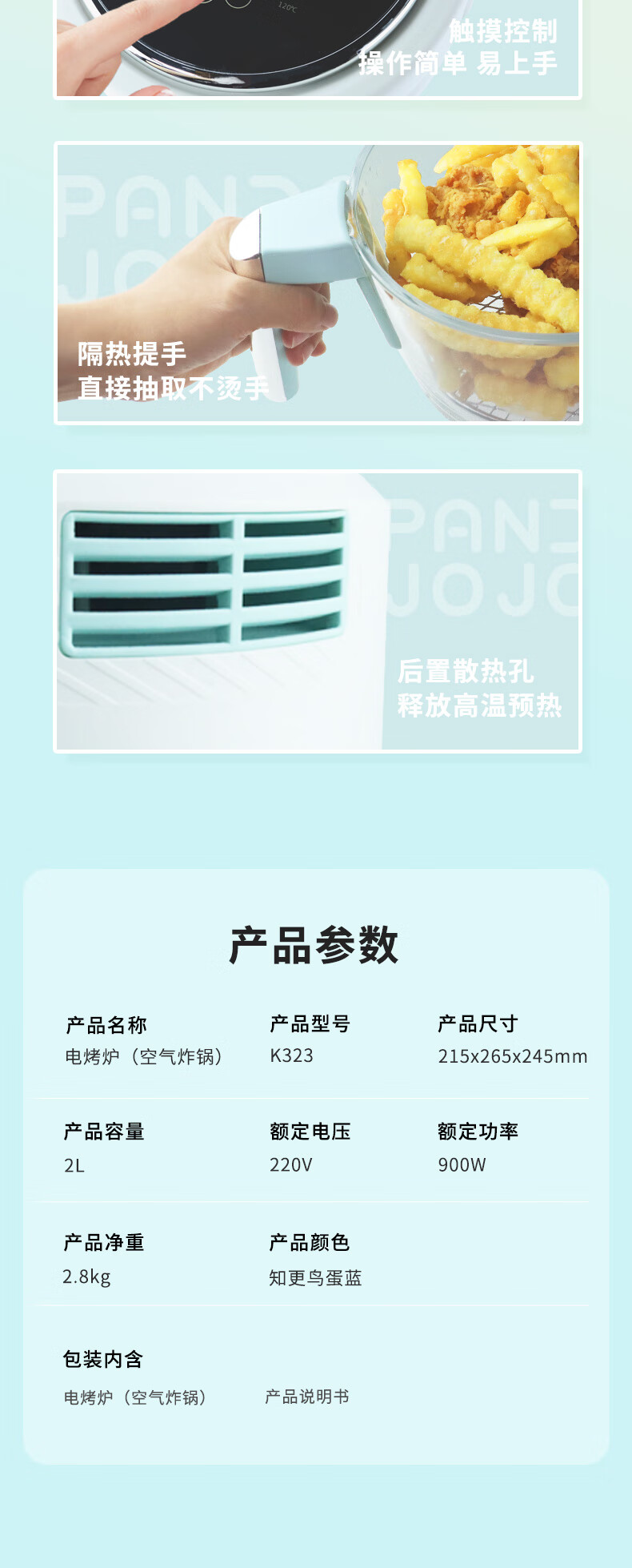 商品名称:pandajojo 可视空气炸锅K323蓝白色 6974310160423