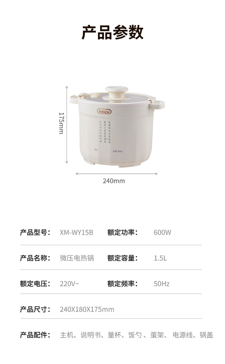 商品名称:卡屋多功能电热锅1.5L容量 XM-WY15B