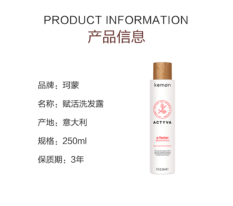 商品名称:珂蒙/Kemon 植研净萃 赋活洗发露250ML 8020936077695