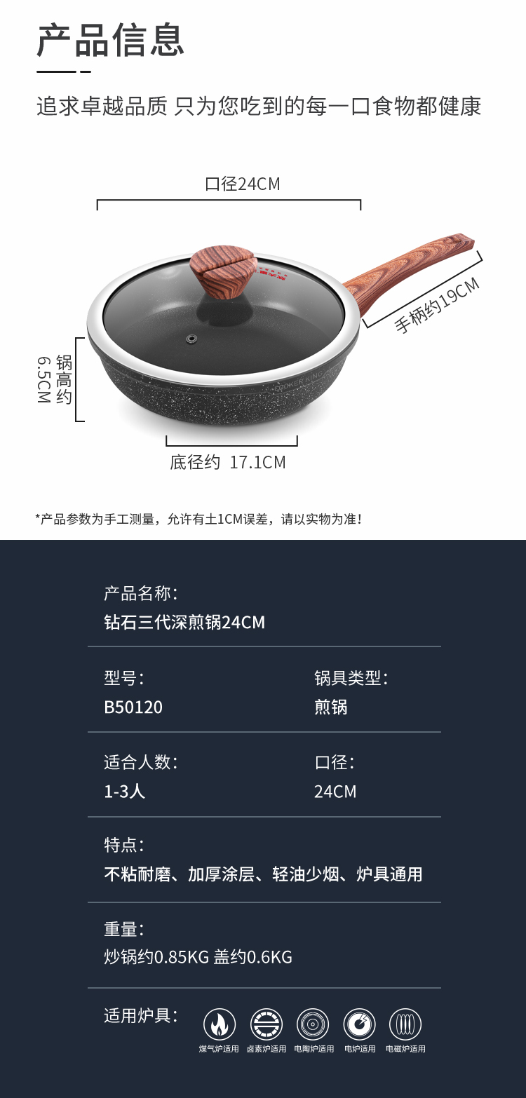 商品名称:炊大皇 钻石三代深煎锅B50120 24cm 6921761850120