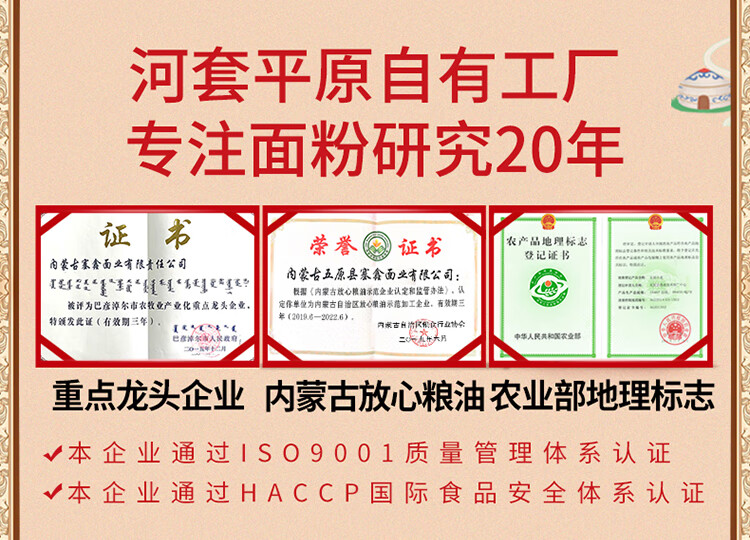 商品名称:鑫乐雪花粉5kg【河套平原雪花粉】国家地标A级绿色食品 中筋面粉 6943724070000