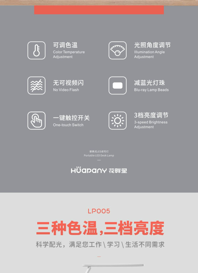 花畔里(Huapany)便携智能护眼读写阅读卧室学生LED台灯LP005