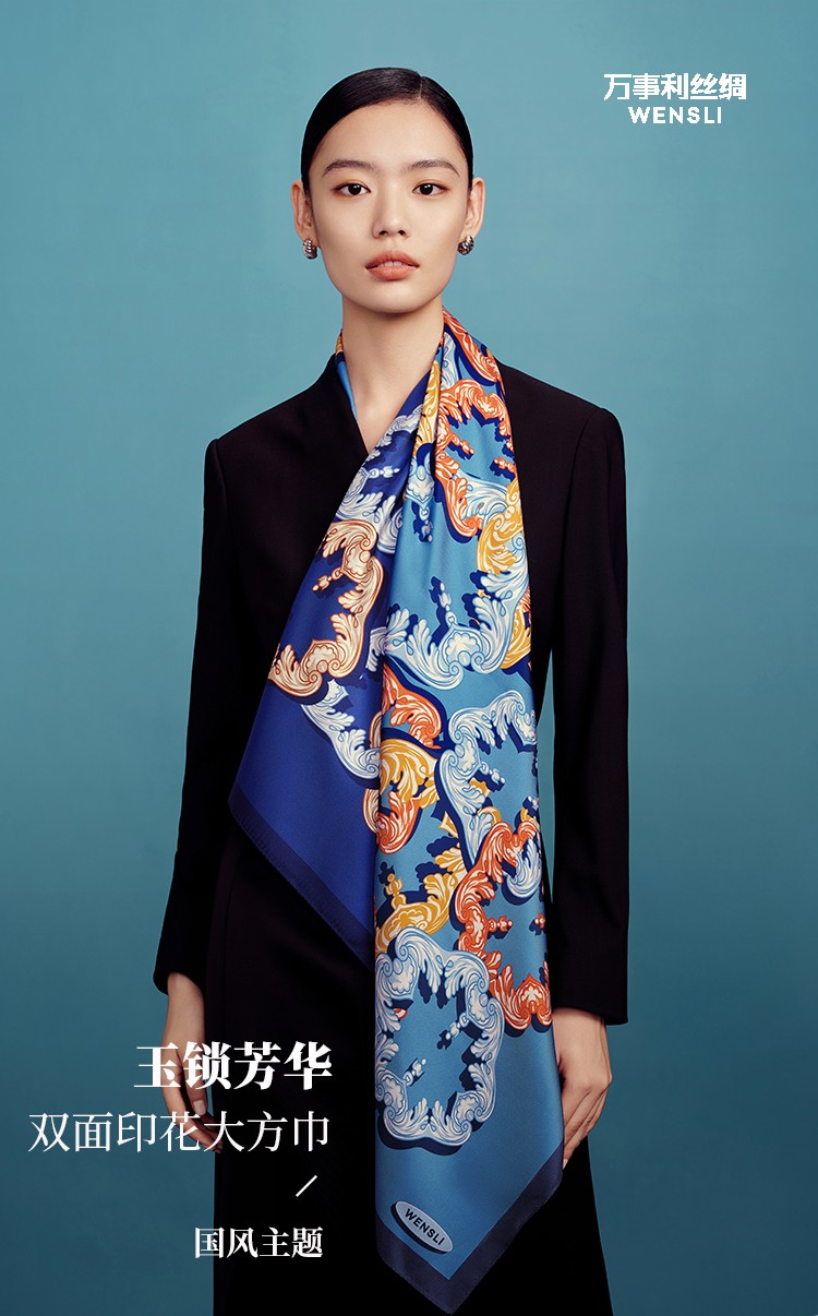 商品名称:万事利丝巾大方巾玉锁芳华 蓝粉 / 粉黄 / 米蓝可选 下单备注颜色