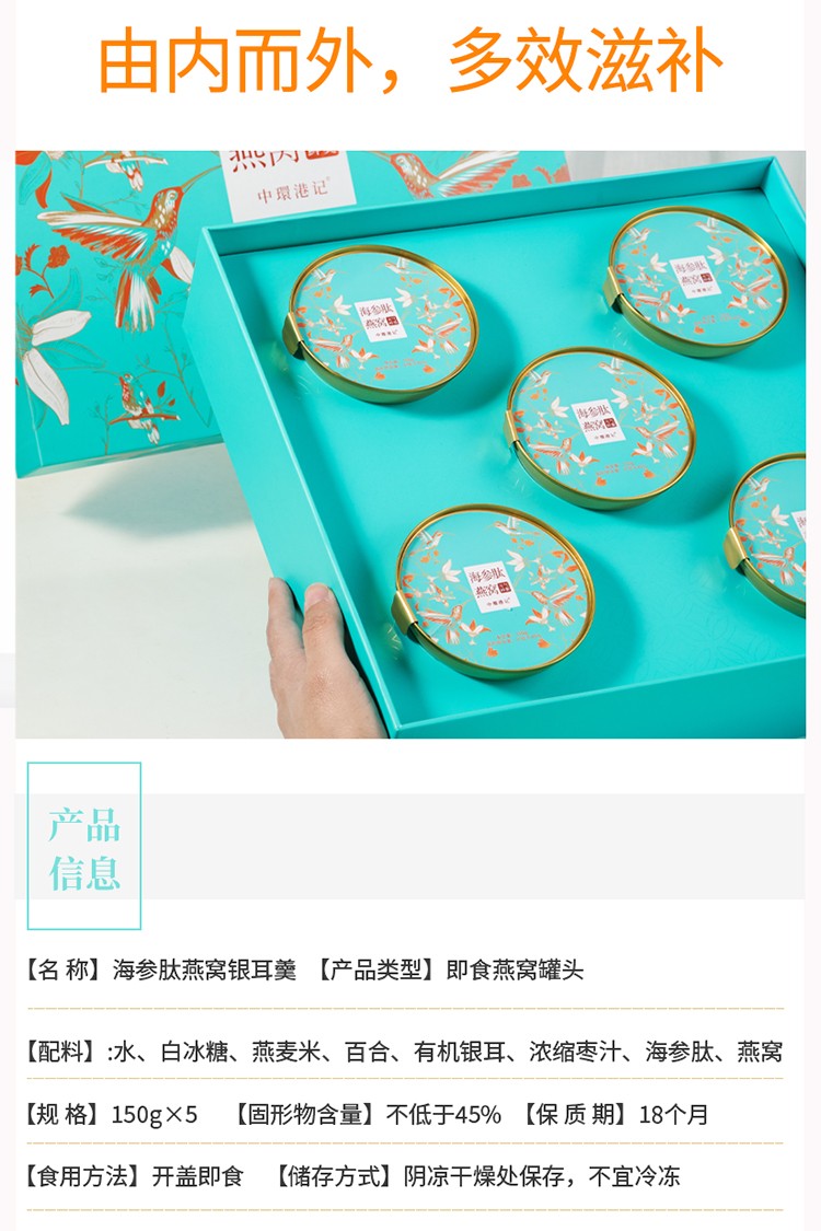 商品名称:中環港记 海参肽燕窝羹150g*5碗*1盒 6972146855919