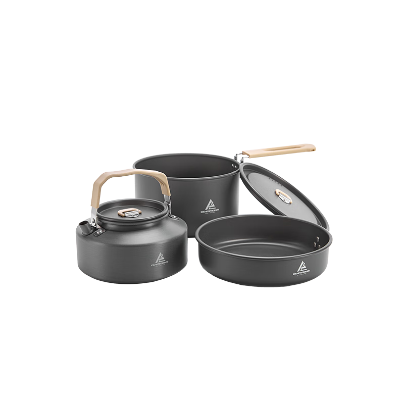 商品名称:错山 户外锅具套装 MP420( 煮锅17*10cm+烧水壶15*8cm+煎锅18*4cm)6975604610426
