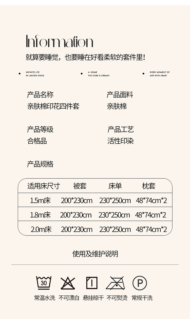 富安娜 纯棉四件套 人间芳菲 203*229cm