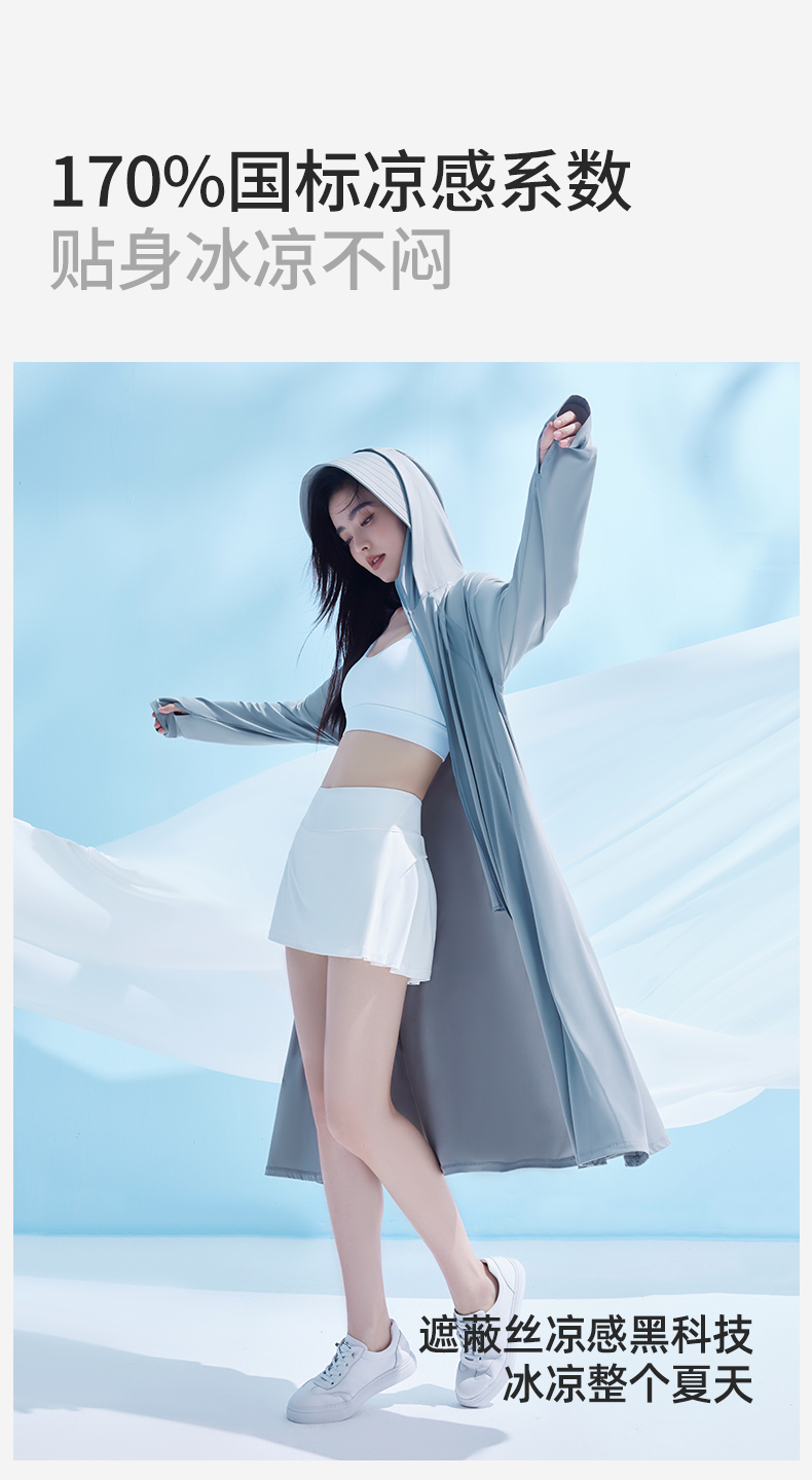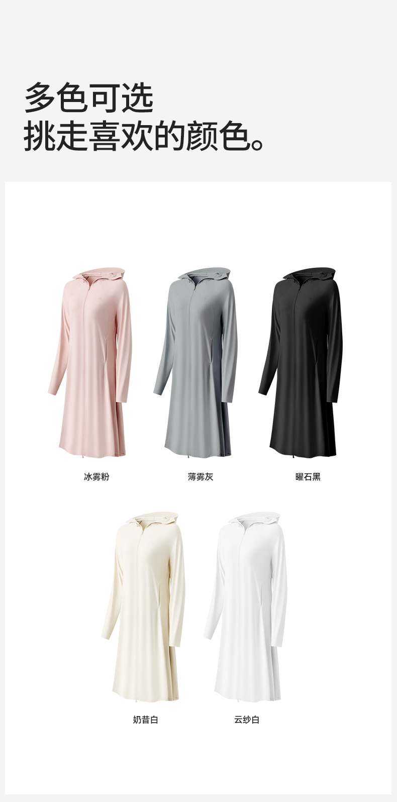 商品名称:小野和子 长款冰丝防晒衣 F码 曜石黑/冰雾粉/云纱白/冰川灰/奶昔白 可选下单备注颜色