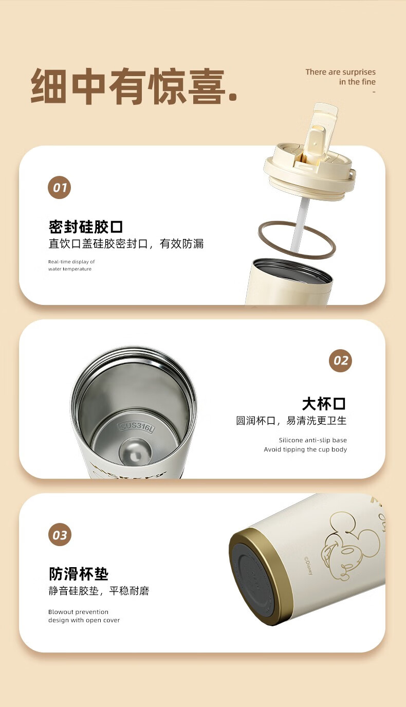 商品名称:格沵GERM米奇系列闪耀咖啡杯500ml GE-DS22AW-K12 星光色6975061453543/晨曦色6975061453819下单备注颜色