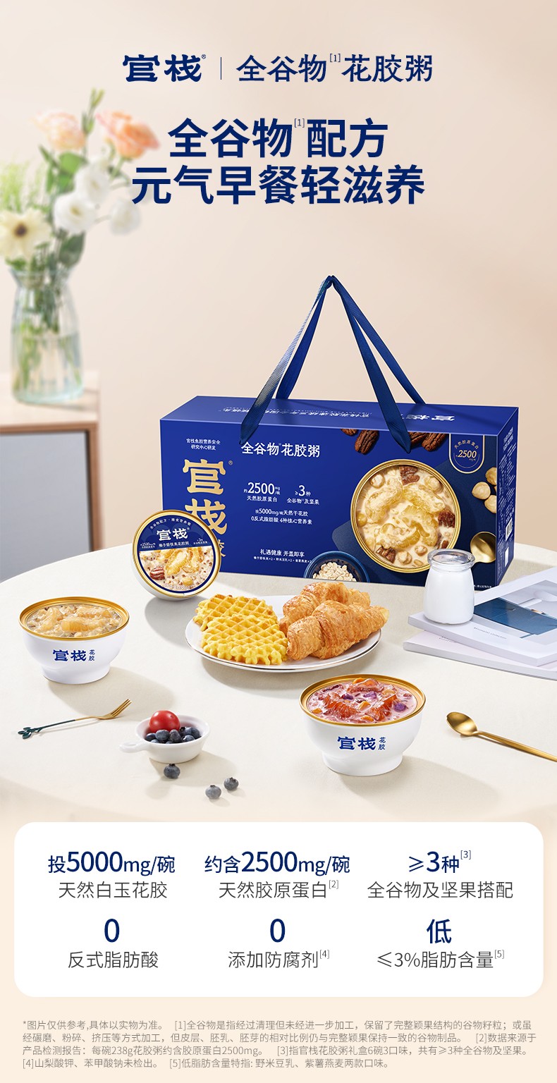 商品名称:官栈 花胶粥礼盒238gx6(紫薯燕麦x2+榛子碧根果x2+野米豆乳x2)/6975455764965