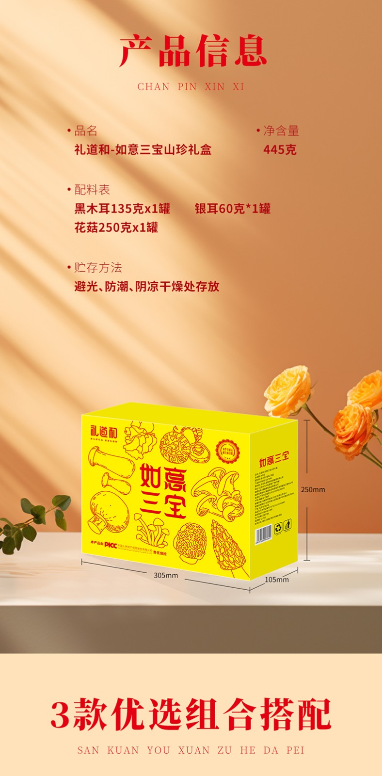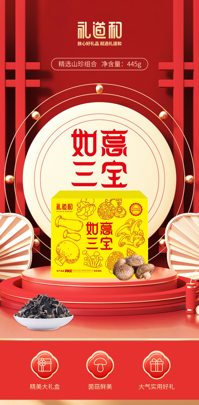 商品名称:礼道和-如意三宝食用菌礼盒445g 6976559260391