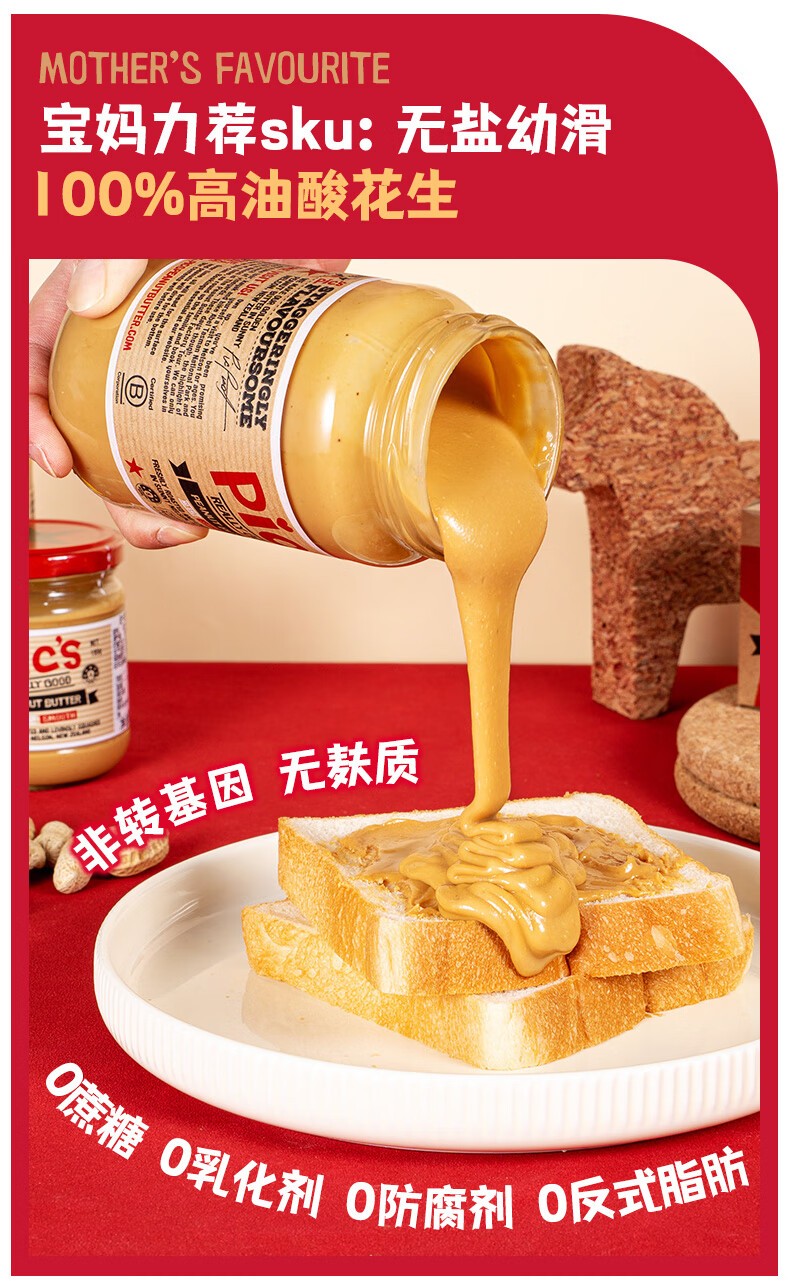 商品名称:Pics皮卡思 无盐颗粒/有盐颗粒/有盐幼滑花生酱1瓶*380g 可选下单备注口味