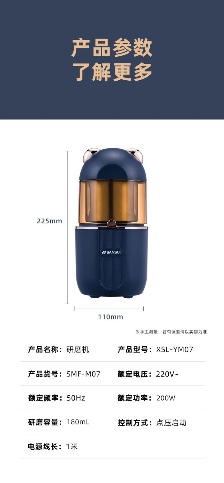 商品名称:山水(SANSUI)料理机(分体式)XSL-YM07 深蓝色 6945960089631