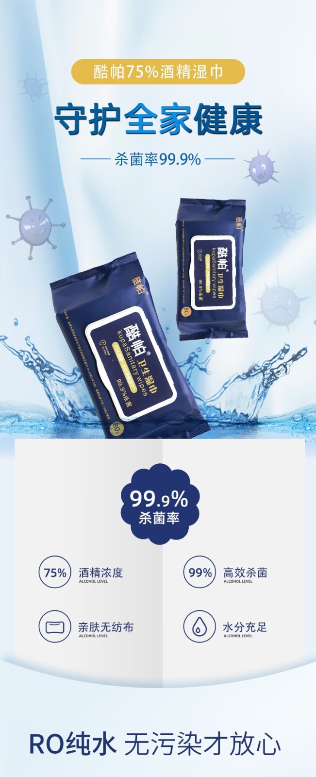 商品名称:酷帕75%酒精湿巾杀菌消毒湿纸巾80抽*4包 KPX-9