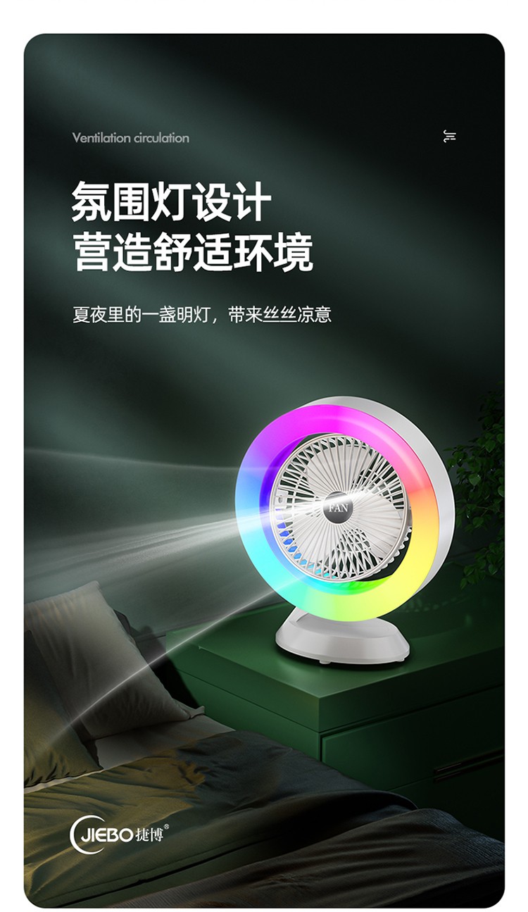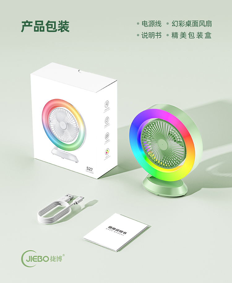 商品名称:捷博 悬空幻彩桌面风扇S27 电镀白色/电镀绿色 可选下单备注颜色