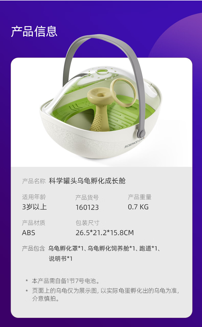 商品名称:科学罐头(Science can)乌龟孵化成长仓 160123