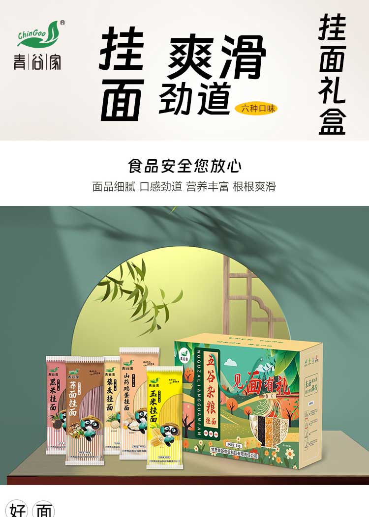 商品名称:青谷家杂粮挂面礼盒装2000克五谷杂粮玉米藜麦黑米荞麦山药挂面
