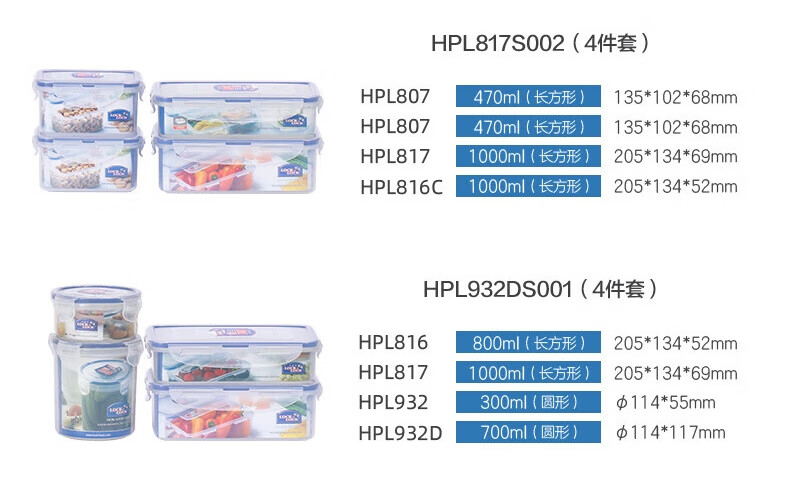 商品名称:乐扣乐扣 塑料保鲜盒4件套 HPL817S002 6943620560032