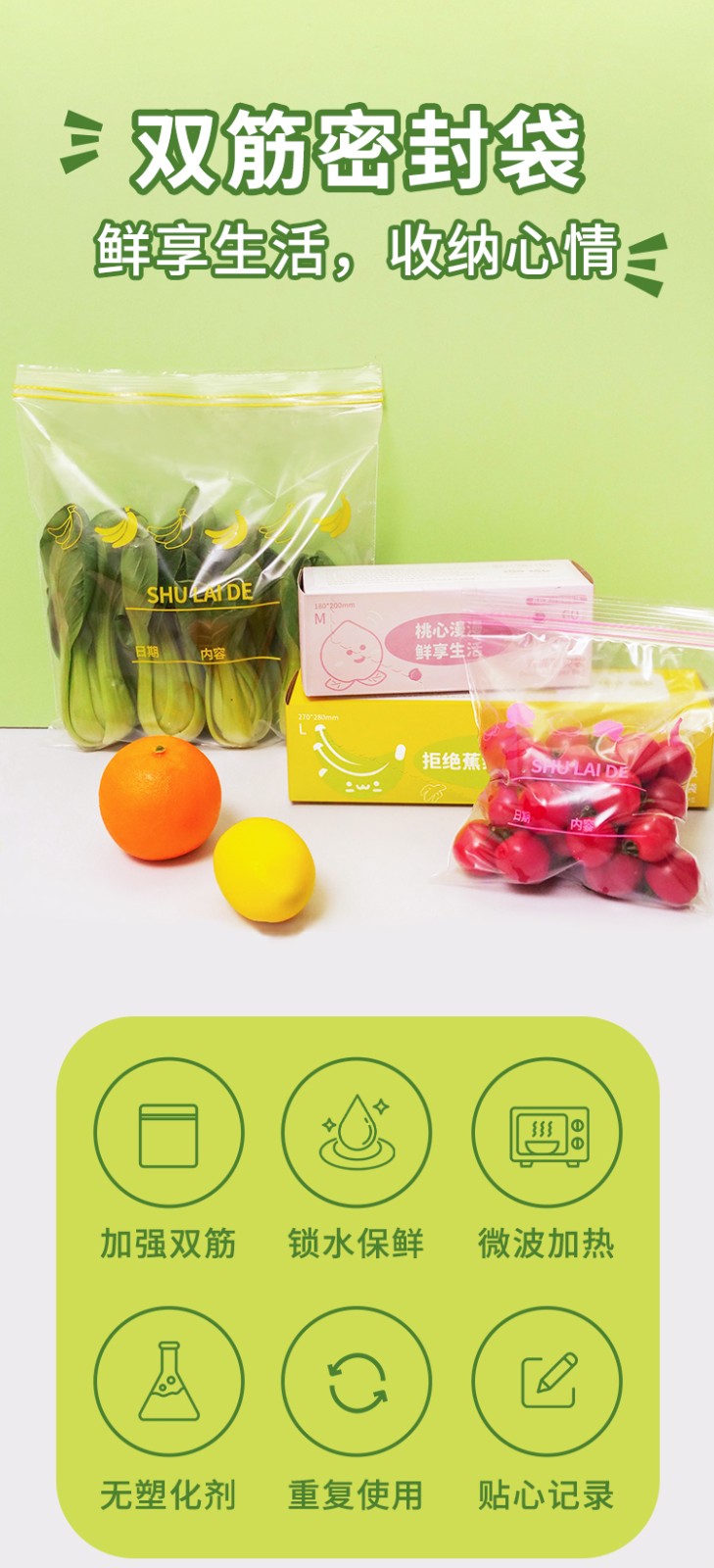 商品名称:舒莱德 密封保鲜袋 中大号 两盒(相当于普通的四盒)