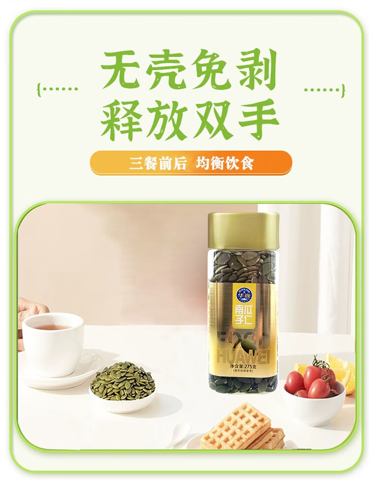 商品名称:华巍 南瓜子仁1罐*275g 6937043501727