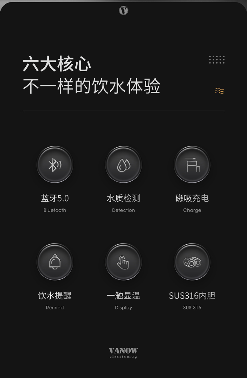 商品名称:Vanow 华为HiLink办公杯480ml VO-PZ480CD 6931462802410 商务黑,绅士灰,英伦蓝,爵士白,香槟金 下单备注颜色