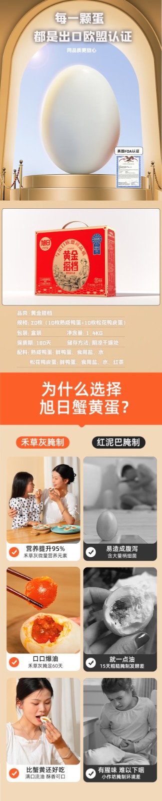 商品名称:旭日1996黄金搭档(松花鸭皮蛋10枚+熟咸鸭蛋10枚)1400g 6940905903096 甘肃,黑龙江,吉林,内蒙古,宁夏,青海,新疆,西藏需另加运费