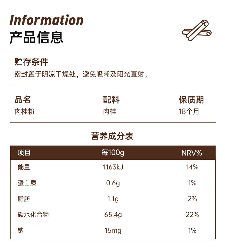 商品名称:JUSSMINI 肉桂粉 80g*1瓶 6971286902989