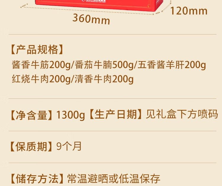 商品名称:月盛斋熟食礼盒 佳节香汇 中华老字号清真牛肉腊味开袋即食 月盛斋佳节香汇熟食礼盒1300g