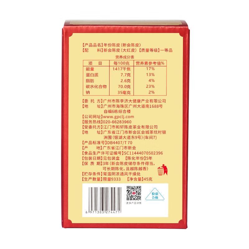 商品名称:陈李济 年份陈皮优品礼盒 三年 35g 6971303274853