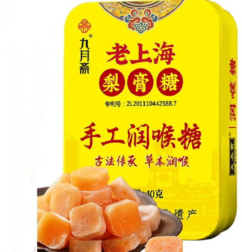 商品名称:九月斋 老上海梨膏润喉糖(铁盒) 40g*5 6970534042842