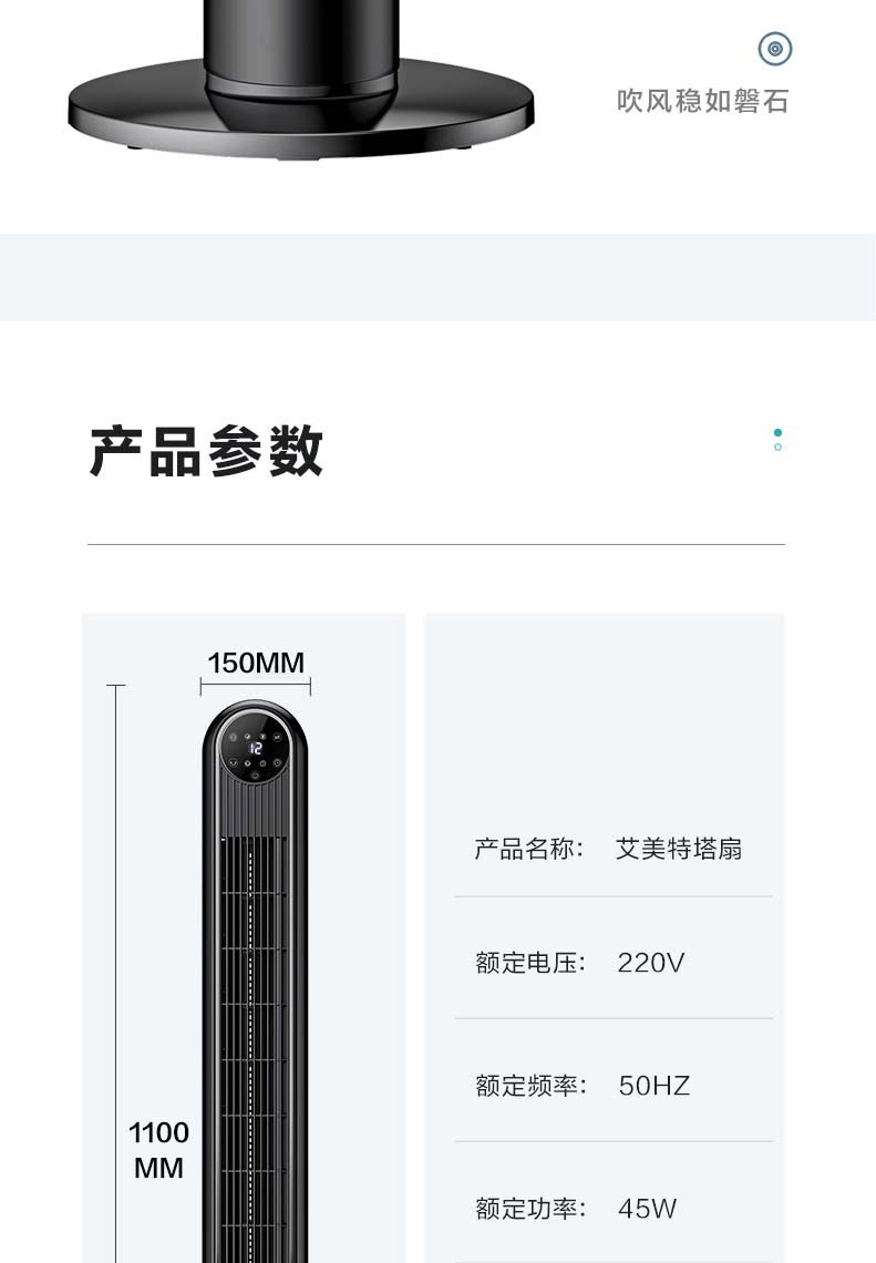 商品名称:艾美特(AIRMATE) 塔扇家用智能遥控无叶风扇可拆洗立式电风扇预约定时柔风省电落地扇 CT-R12(遥控款) 黑白色