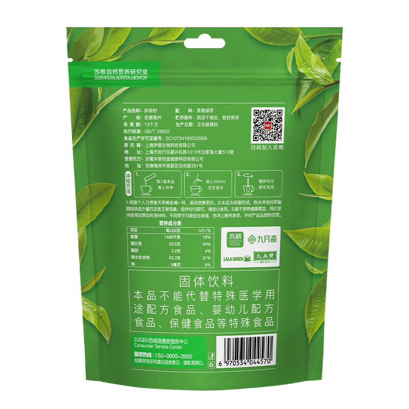 商品名称:苏根 抹茶粉 90g*2 6970534044570