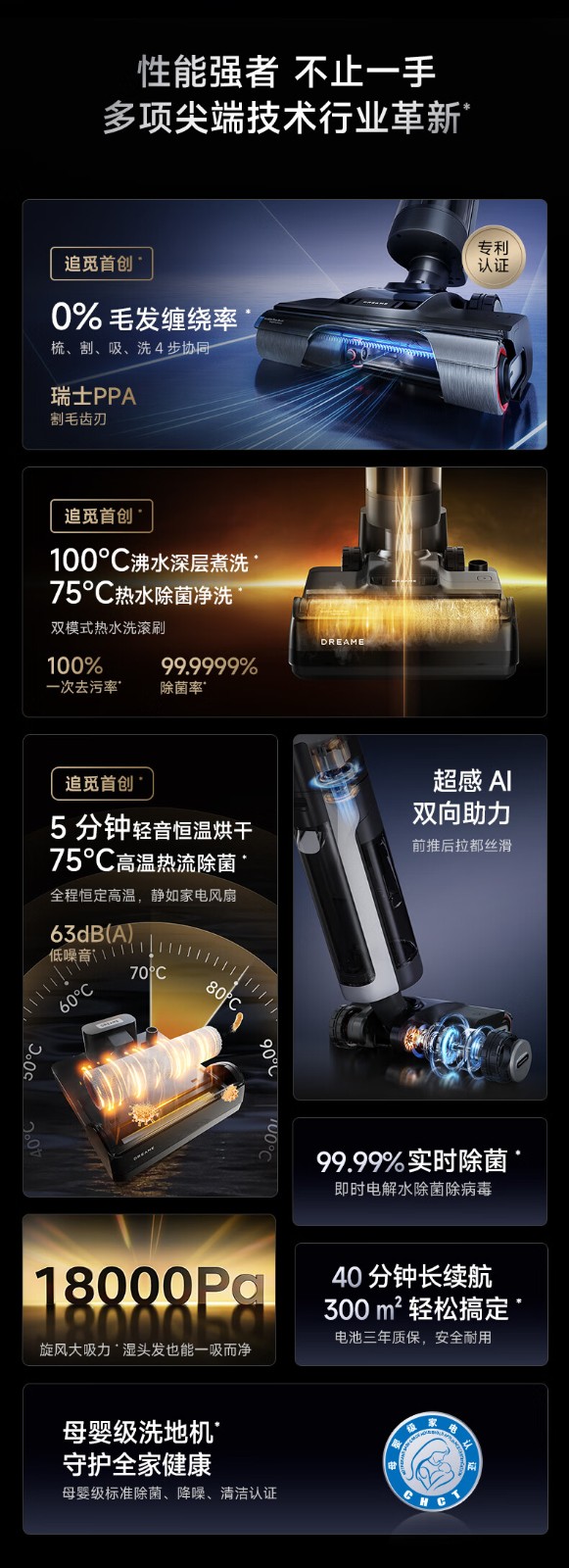 商品名称:追觅 H20PRO旋锋版 毛发切割防缠绕高温热水无线洗地机