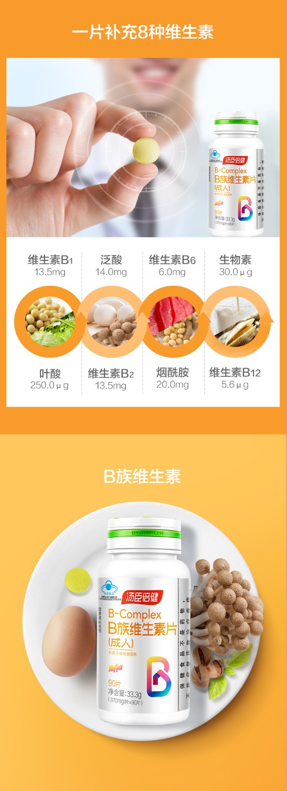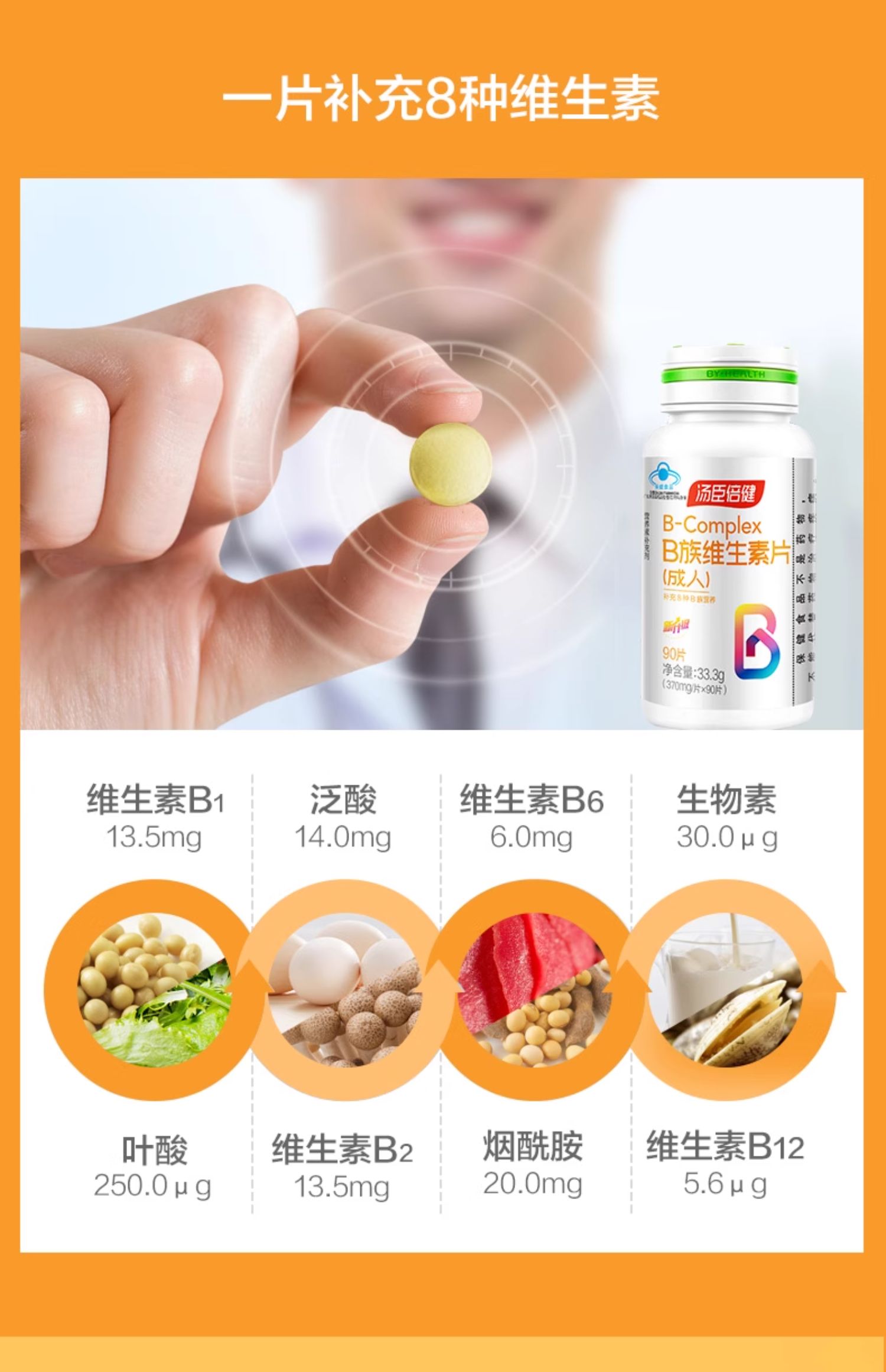 商品名称:汤臣倍健维生素B族片90片*1瓶6940863619763