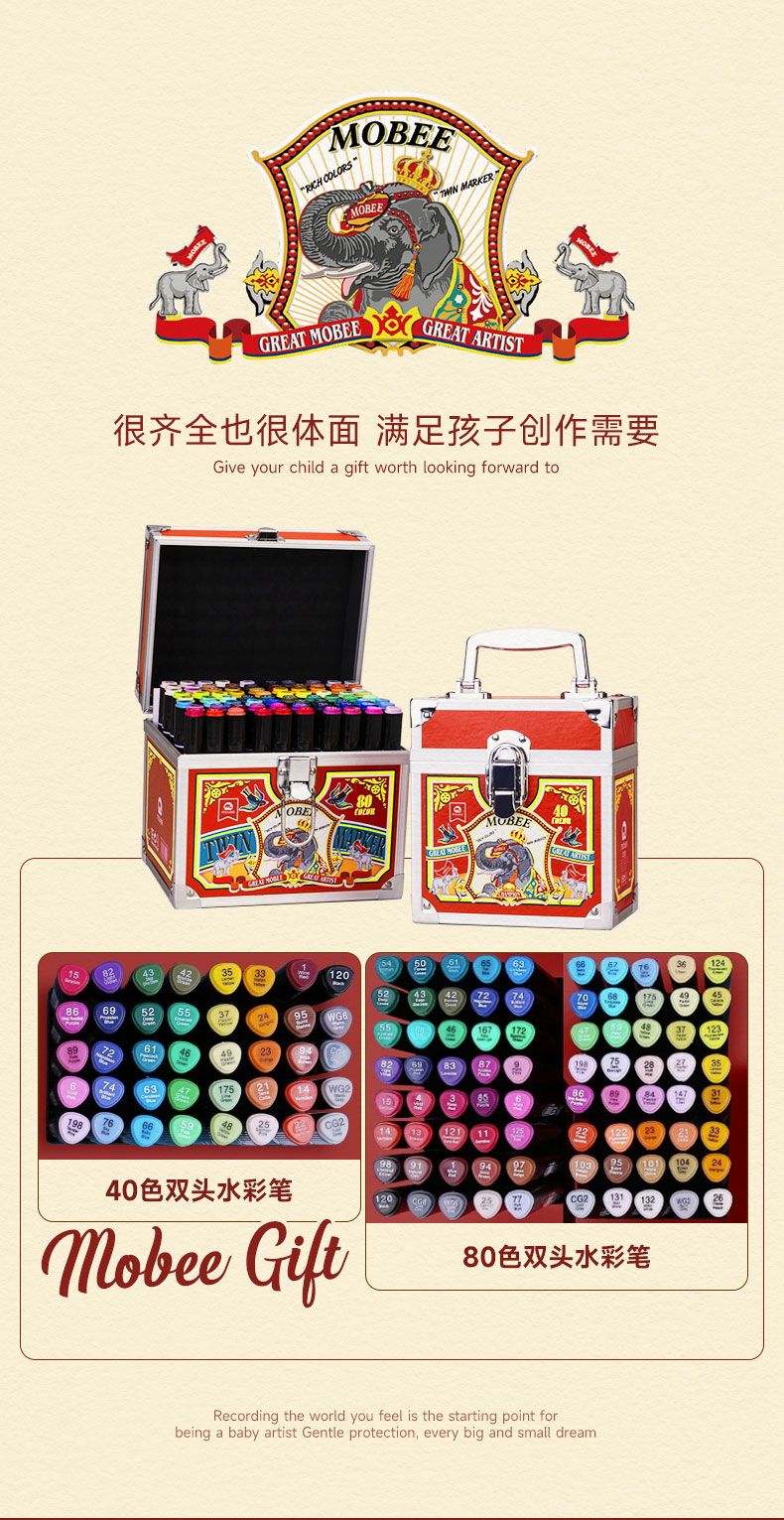 小象莫贝 儿童马克笔礼盒40色 红色 P020T40