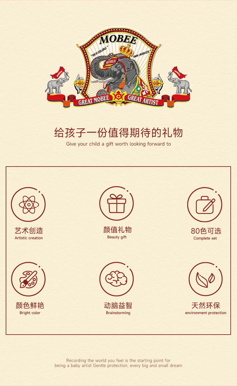 商品名称:小象莫贝 儿童马克笔礼盒40色 红色 P020T40