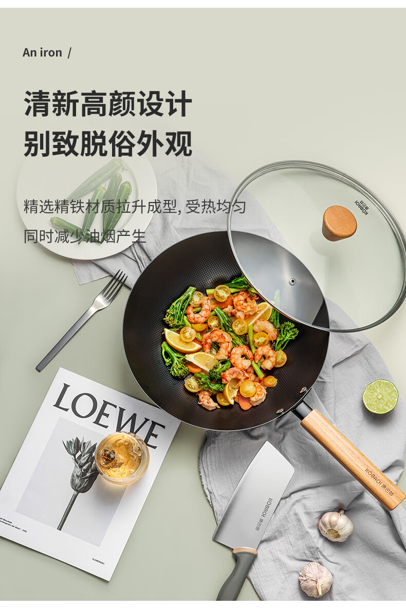 康巴赫臻选两件套LPB-T02Z 30cm炒锅+切菜刀 6957929927120