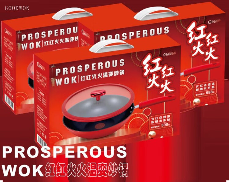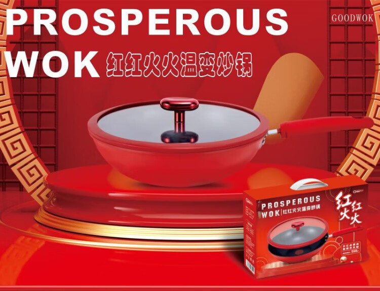 咕德沃克 红红火火温变炒锅32cm GDW3216 6976909930080