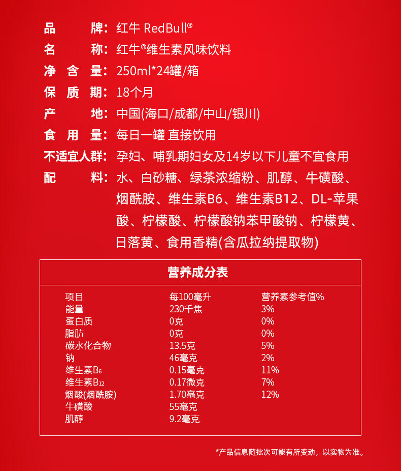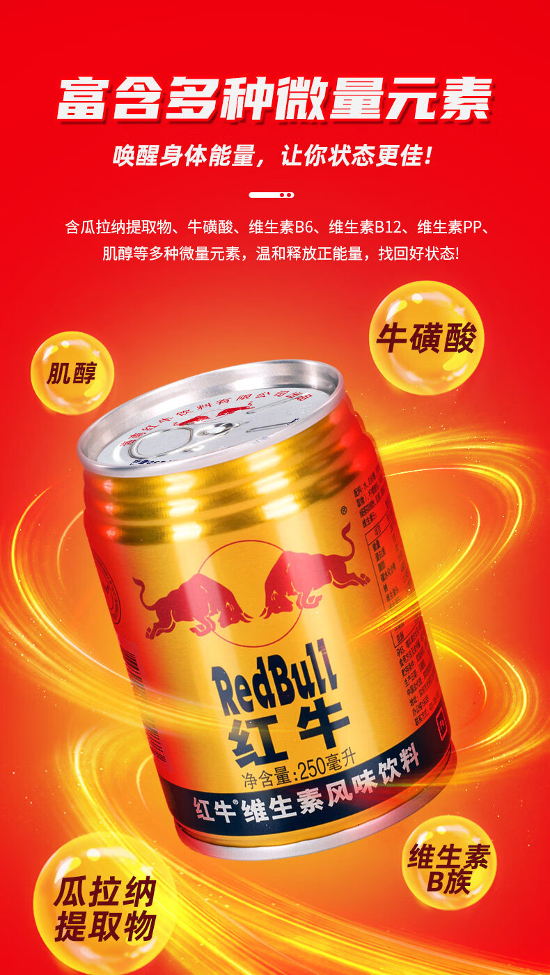 商品名称:【国产】红牛维生素风味饮料 250mI*24罐 偏远区域不发货