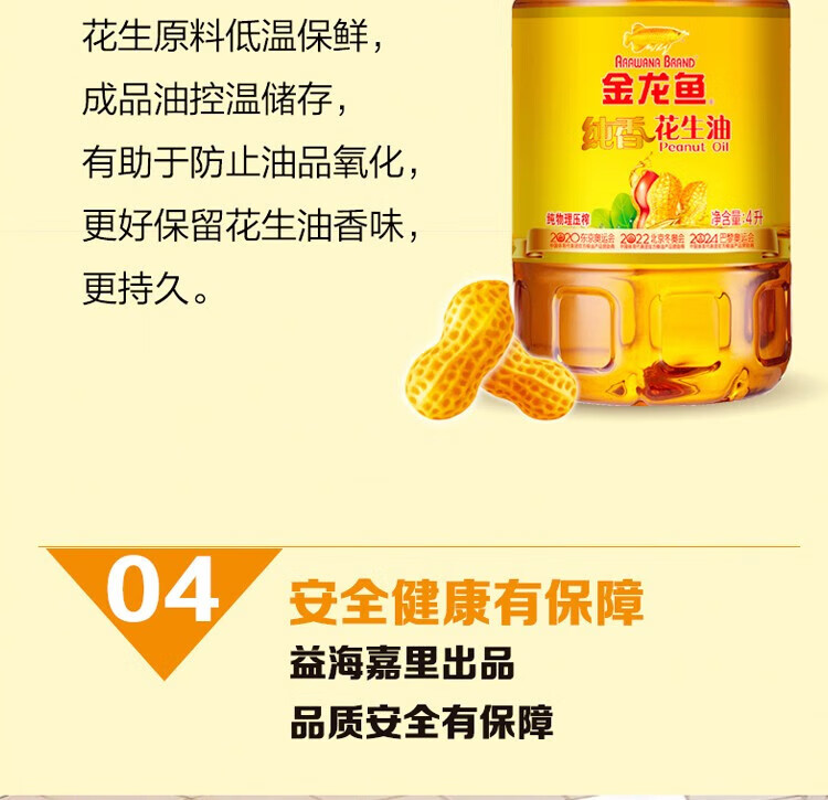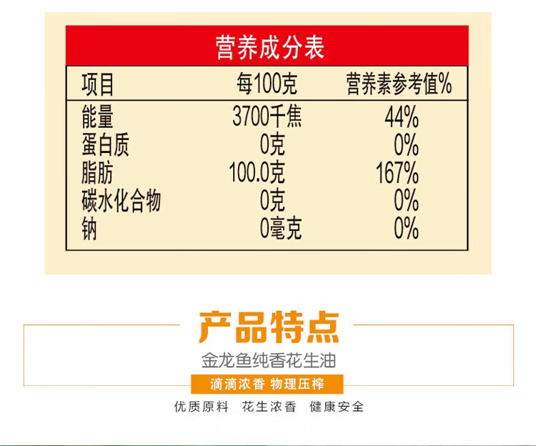 商品名称:金龙鱼 纯香花生油4L 6948195838203 偏远另加运费