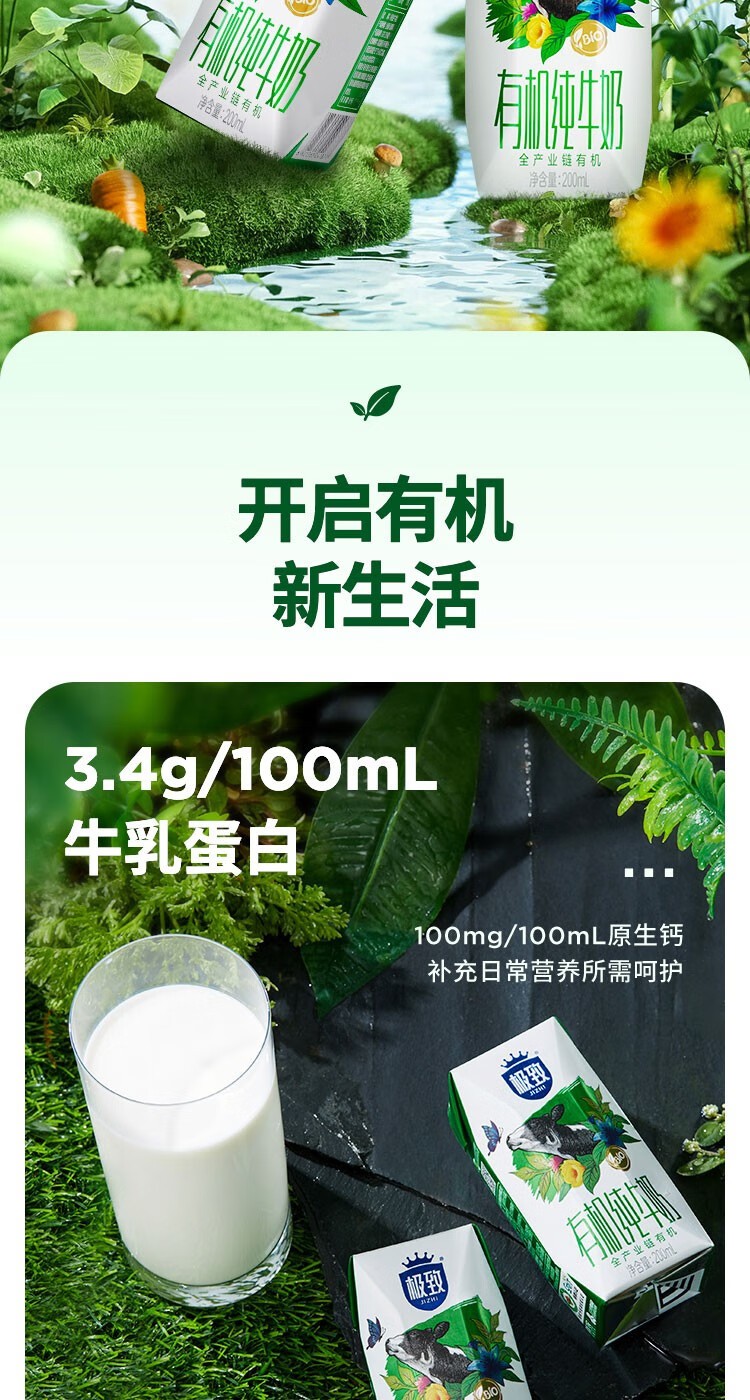 商品名称:三元(SAN YUAN)极致有机纯牛奶3.4g牛乳蛋白200ml*10盒*1箱