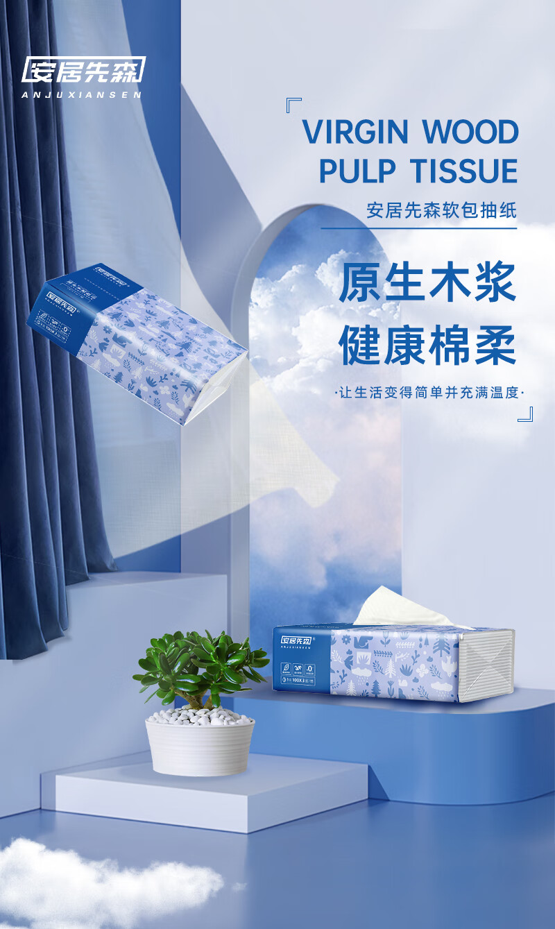 商品名称:安居先森 原生木浆软包100抽抽纸 160*180mm*3层组合6包装3层600抽